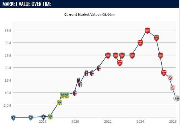 03月12日讯 近日德转更新荷甲球员身价,27岁日本后卫富安健洋身价下跌400万,至800万欧。2021年夏窗,富安健洋以1860万欧转会费从博洛尼亚加盟阿森纳,效力4个赛季球员共出战84场比赛,贡献2球6助。2024年5月,富安健洋的德转身价来到3500万欧,达到生涯巅峰。24-25赛季,富安健洋两度接受膝盖手术,赛季报销,去年夏窗球员也与枪手提前1年解约...